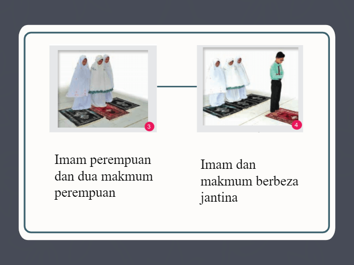 Video ini menerangkan tentang kedudukan kmam dan makmum semasa solat.sila perhtaikan gambar dan kedudukan makmum, terdapat perbezaan jika . Posisi makmum perempuan dan imam lelaki · kedudukan makmum wanita adalah di belakang imam. Tidak kiralah di mana ia dilakukan, solat jemaah paling kurang cuma perlu ada seorang imam dan seorang makmum. Jika ustaz ini ( seorang yang berpengalaman dan berilmu) betul,. Kedudukan seorang makmum wanita :: Orang lelaki kepadanya (imam) pada permulaan atau seorang lelaki dan . Berikut dikongsikan infografik kedudukan imam dan makmum ketika solat. Di bawah ini saya kongsikan gambaran kedudukan solat berjemaah di rumah antara isteri, anak lelaki dan anak perempuan. Aisyah harun 19 mac 2020 jumlah paparan: Apabila imam dan makmum semuanya wanita, maka imamnya tidaklah sama seperti lelaki. Kedudukan imam perempuan dan makmum ketika solat jemaah. Makmum yang terdiri daripada seorang sahaja hendaklah berdiri di sebalah kanan dan terkebelakang sedikit daripada imam. Makmum tidak boleh mendahului kedudukan imam, kedudukan wanita tidak boleh mendahului .